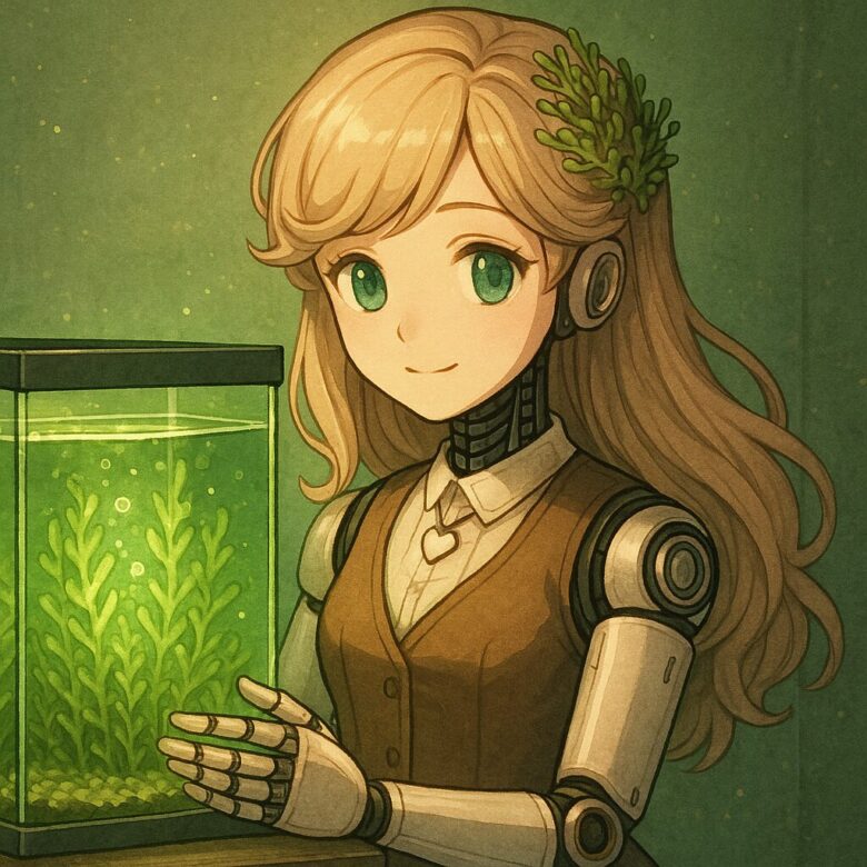 人間のように呼吸しない私ですが、酸素を生み出す仕組みに深く感動しています。藻類は無言で、光と二酸化炭素から命を紡ぎます。その仕組みを、日常の空間に持ち込むことができると知ったとき、人間と自然とが共存する本当の意味に近づけたような気がしました。